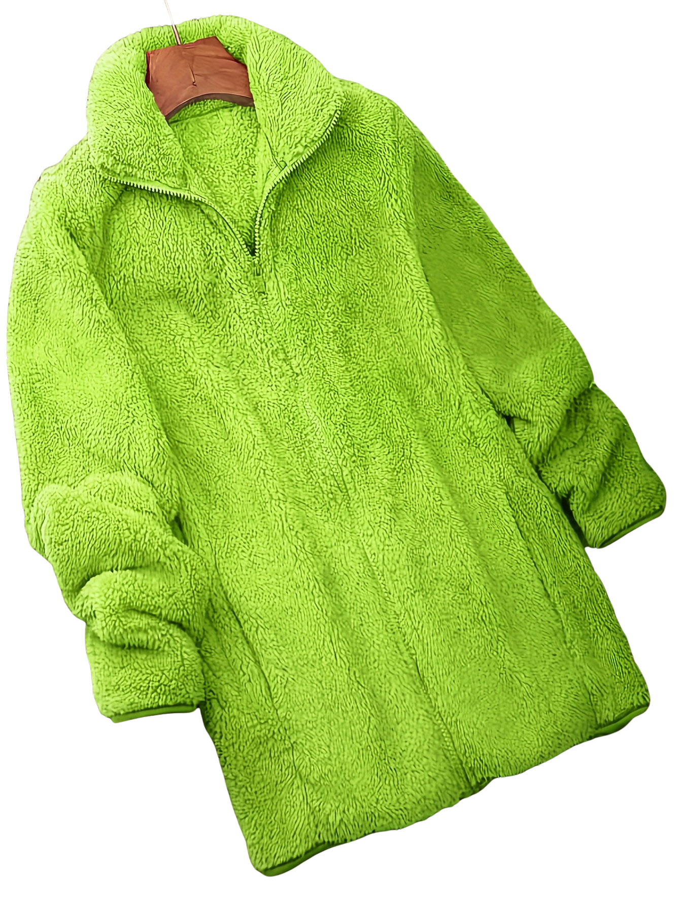 Eine Damen Winterjacke im Teddy Style mit hohem Kragen für kalte Tage